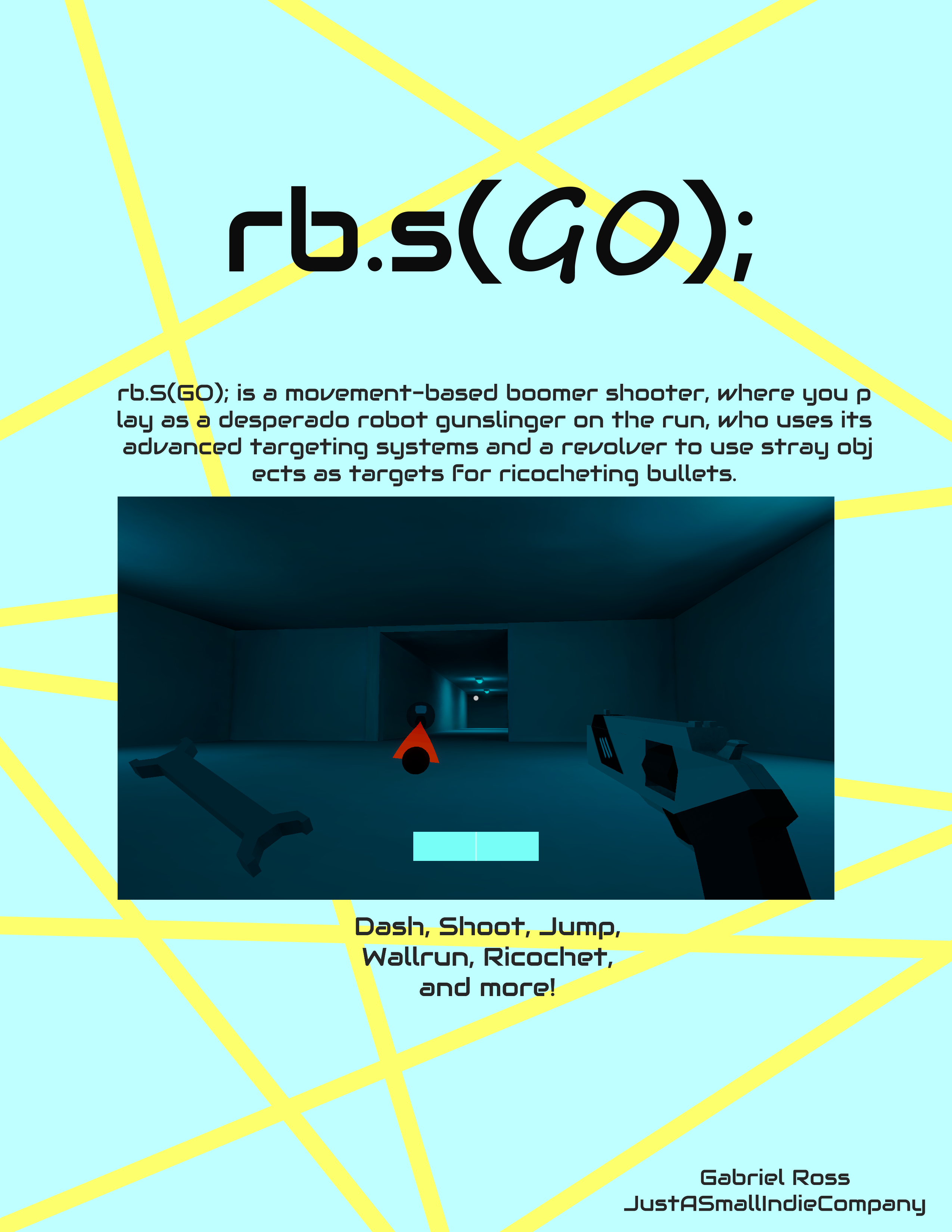 In rb.S(GO); you play as a defective robot soldier unit – designated as RB.S-2 (or just “Stue”) – in the not-so-distant future on the run from the authorities, your creators, and more. Equipped with extreme mobility, an advanced targeting system, and only a standard-issue revolver, Stue has the ability to almost always hit their target, and from anywhere – even off of stray objects.